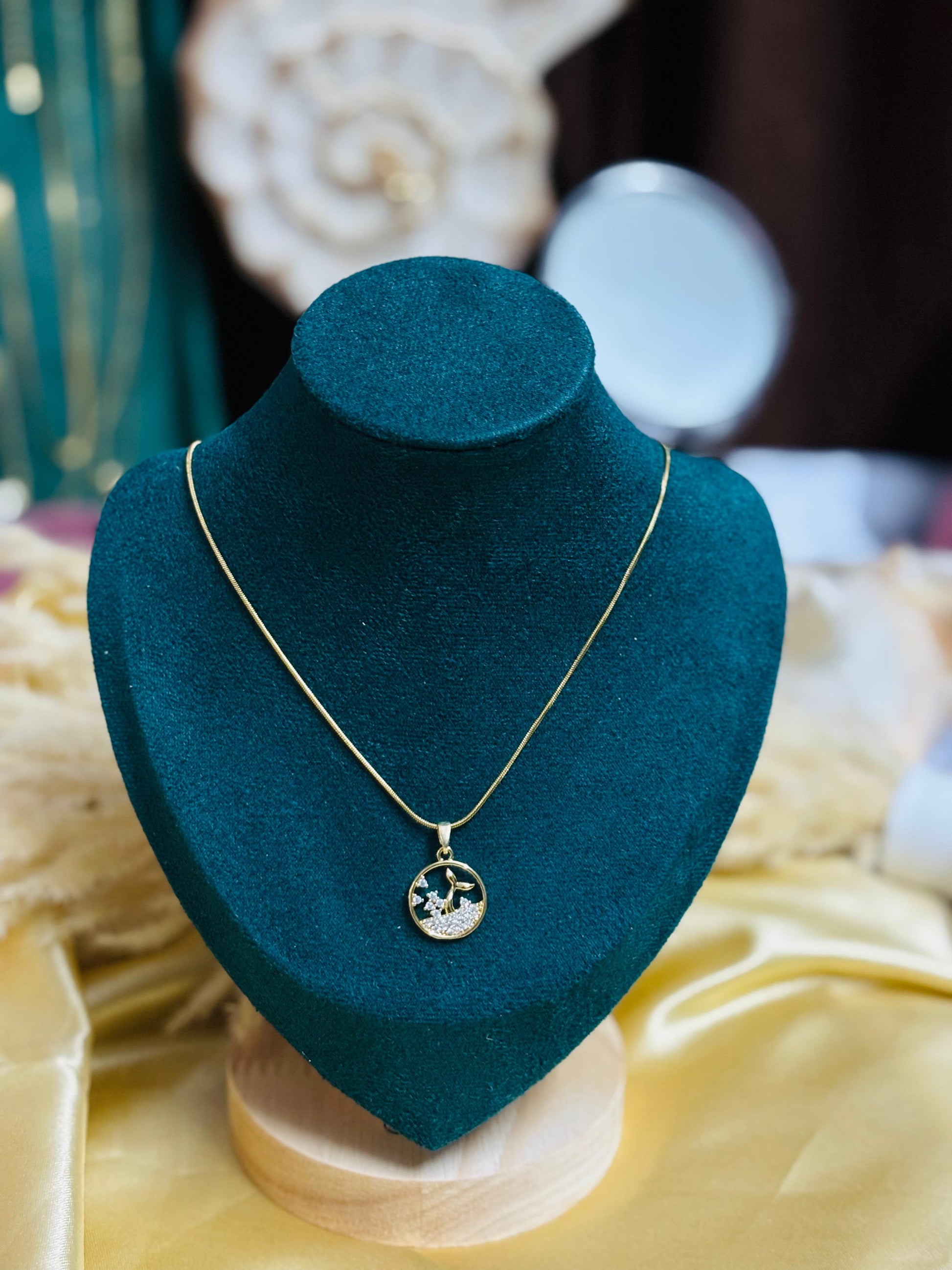 This Elegant Round Stone-Detail Pendant Chain features a timeless circular design with finely set stones. Crafted with anti-tarnish and hypoallergenic materials, it ensures lasting shine and comfort for sensitive skin, making it a sophisticated and durable addition to your jewelry collection.