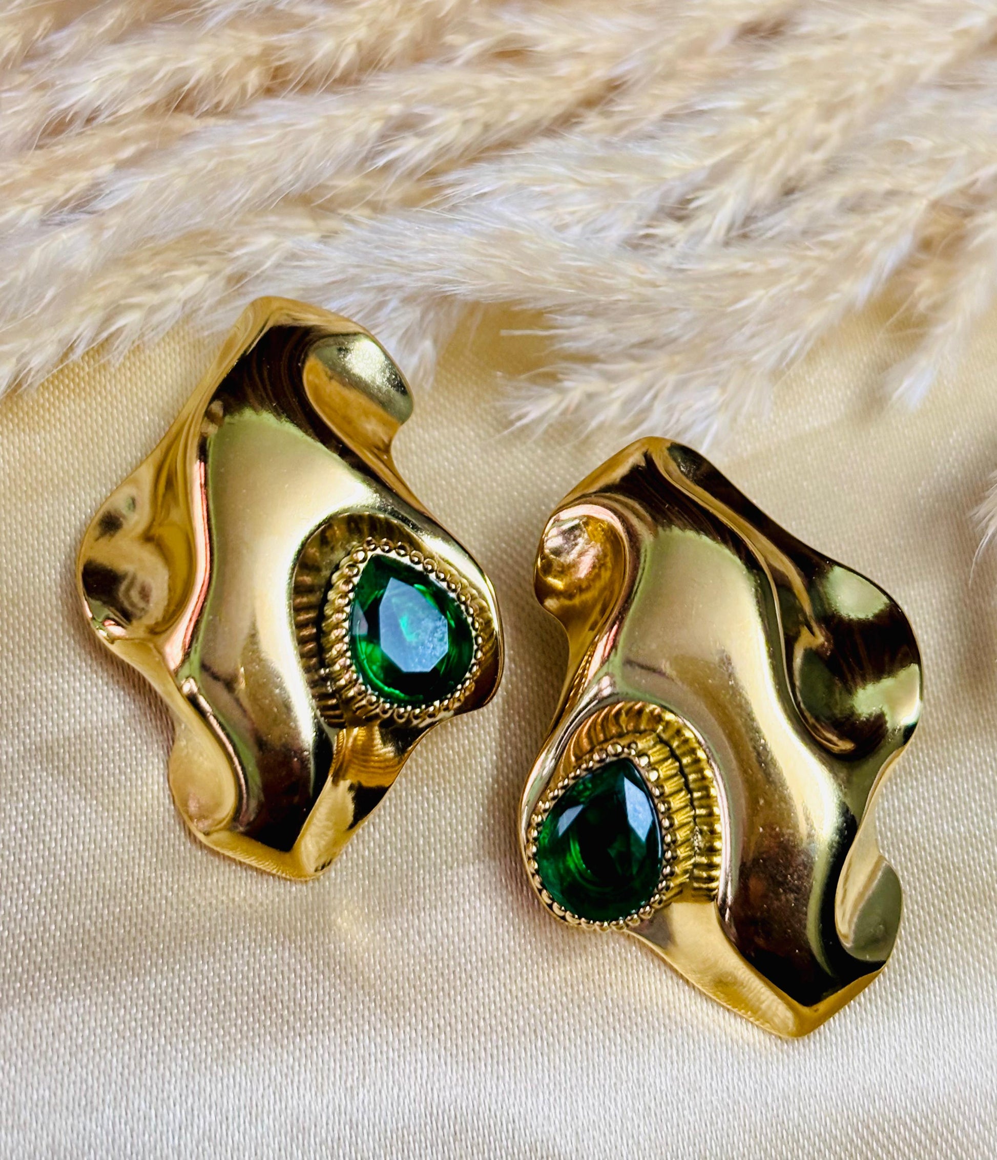 Crafted with precision, the Emerald Leaf Elegance Studs feature green stones set in a delicate leaf design. These earrings are both antitarnish and hypoallergenic, ensuring lasting shine and comfort for sensitive skin. Perfect for adding a touch of nature-inspired sophistication to any ensemble.