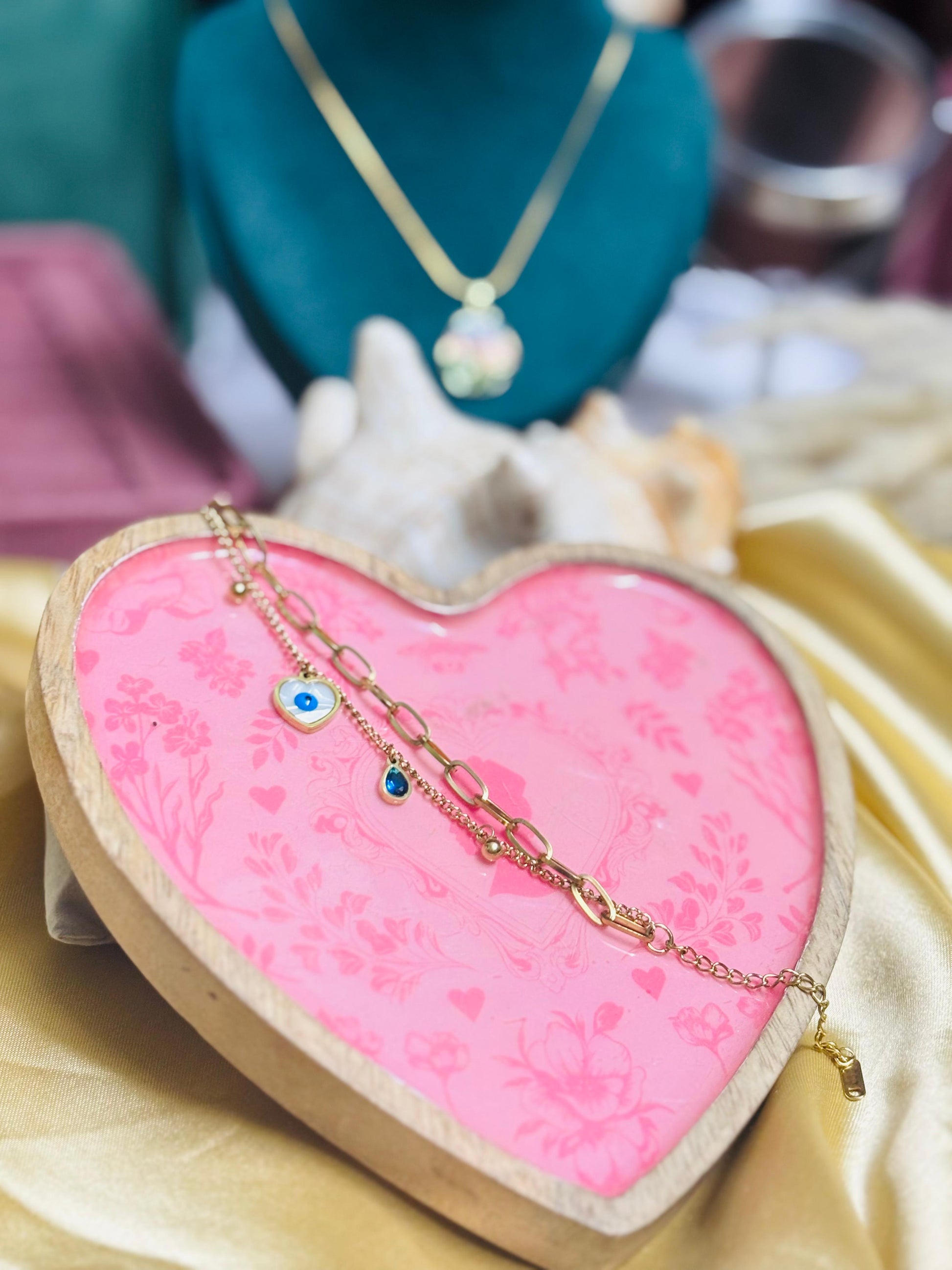 Mystic Guardian Double Layer Evil Eye Bracelet This expertly crafted bracelet features a dual-layer design with traditional evil eye symbols, offering both protection and sophisticated style. The premium anti-tarnish finish ensures lasting brilliance, while hypoallergenic materials make it suitable for sensitive skin. Each amulet is precisely positioned to create visual depth while serving its protective purpose in this elegant, everyday accessory.
